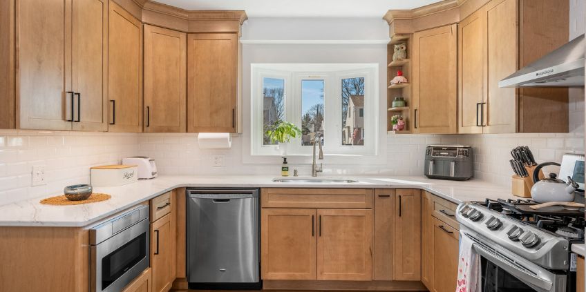 Wood cabinets bring a quality that white finishes can't fully replicate — natural grain variation, depth, and the kind of warmth that makes a kitchen feel genuinely lived-in rather than just designed. The way wood stain responds to natural light throughout the day is a big part of the appeal, and it's something that tends to surprise homeowners who haven't experienced it firsthand.